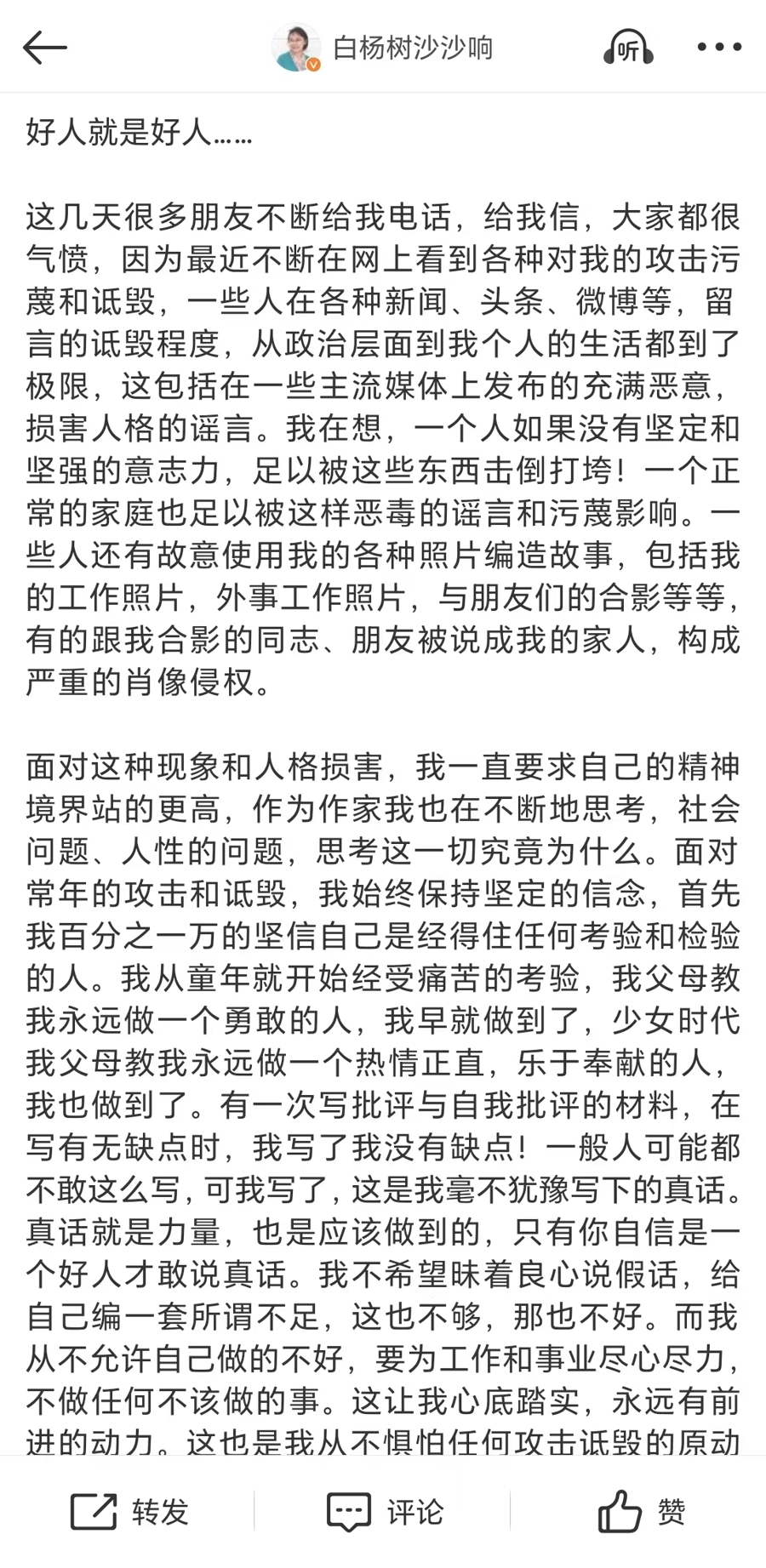 近日,中国残联原主席张海迪在微博发文,公开回应近期网络上对其攻击、污蔑和造谣行为。